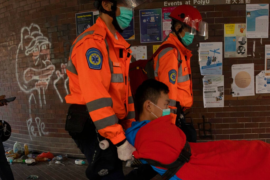 HK protesters set campus entrance ablaze to keep cops out