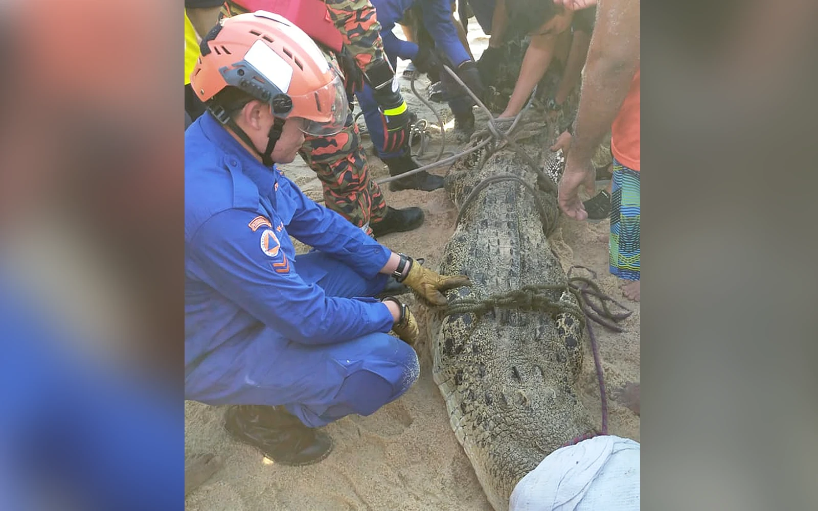 Crocodile caught at Teluk Bahang beach