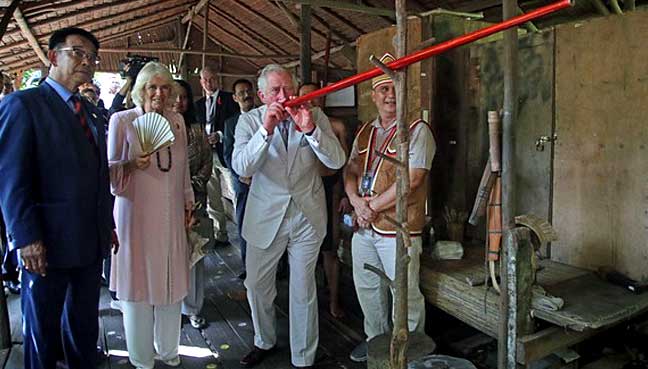 On target: Prince Charles shoots blowpipe in Sarawak