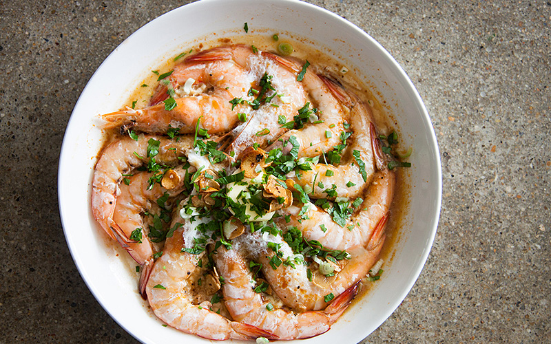 Steamed prawns in egg whites, Butterkicap-style