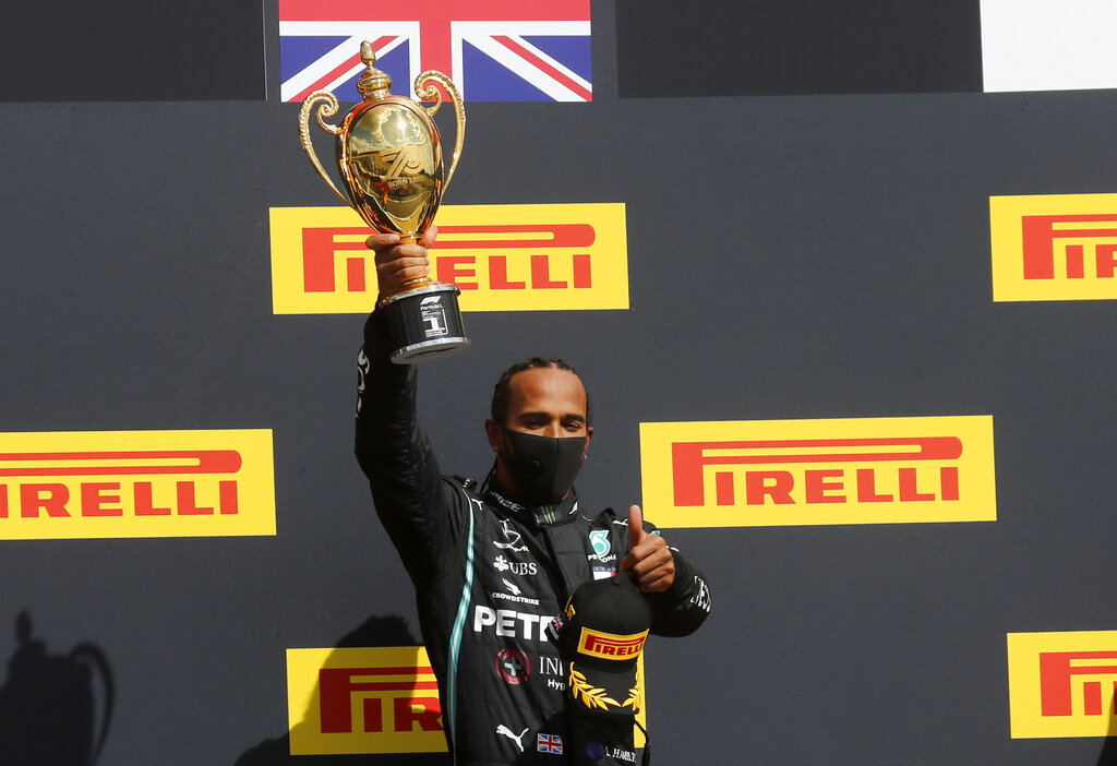 Hamilton limps to record British GP win after late puncture