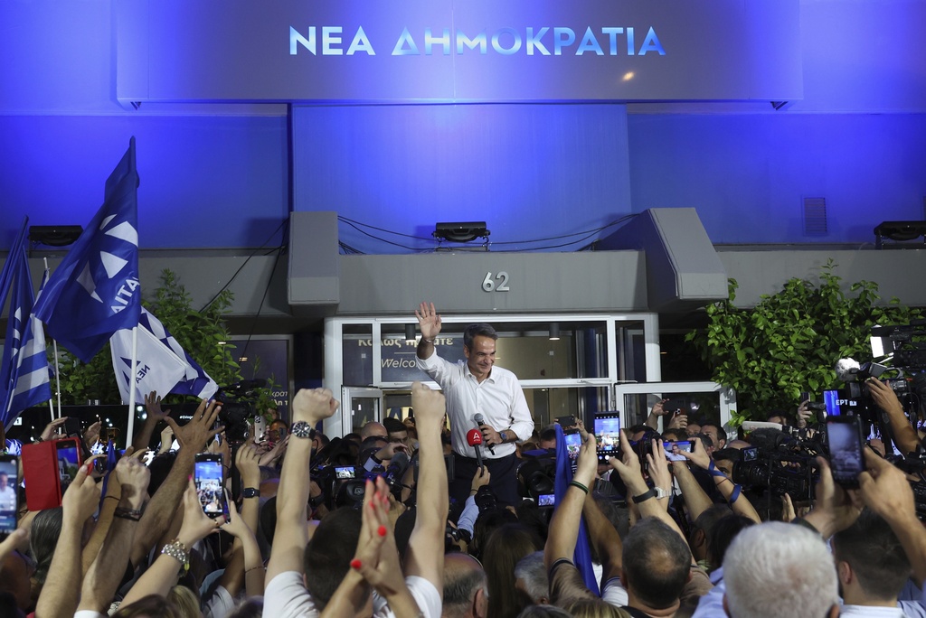 Greece’s ruling Conservatives win vote, fall short of majority