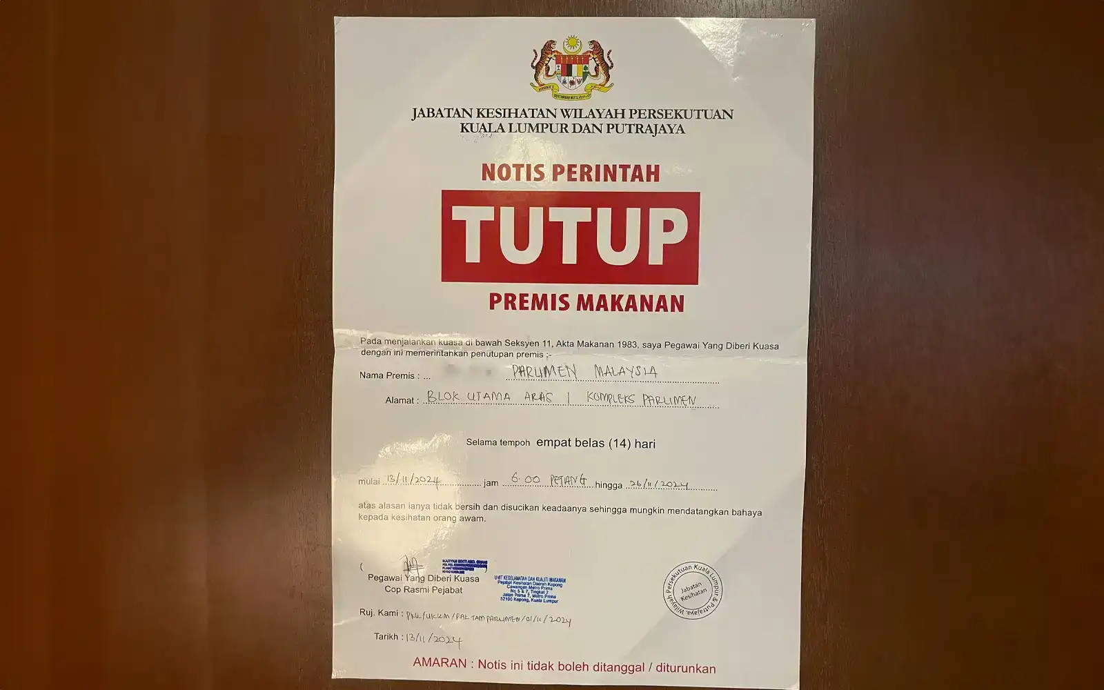 Parliament cafeteria ordered to close over health violations