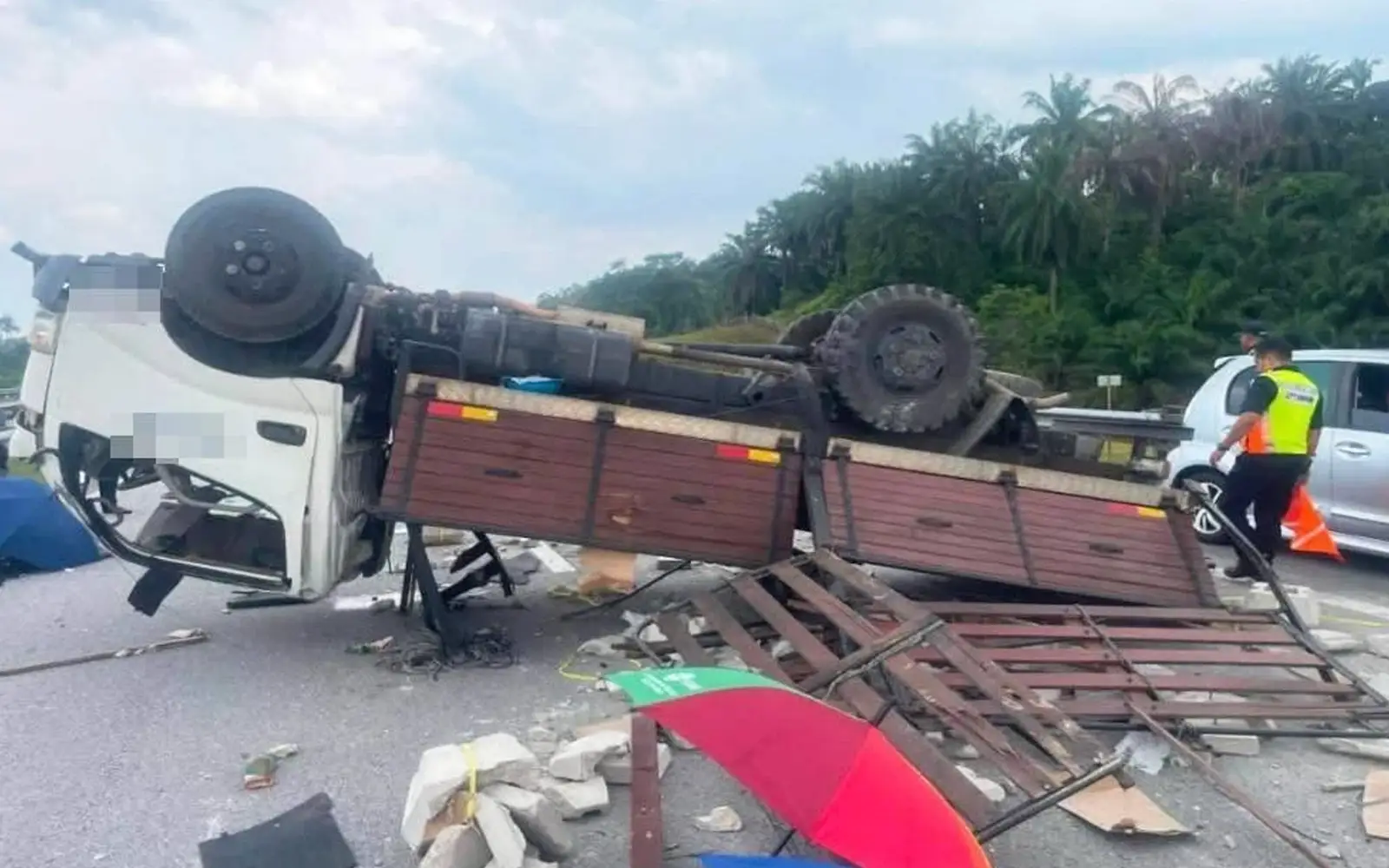Lori terbalik di NKVE: Bomba berjaya kawal kebocoran gas