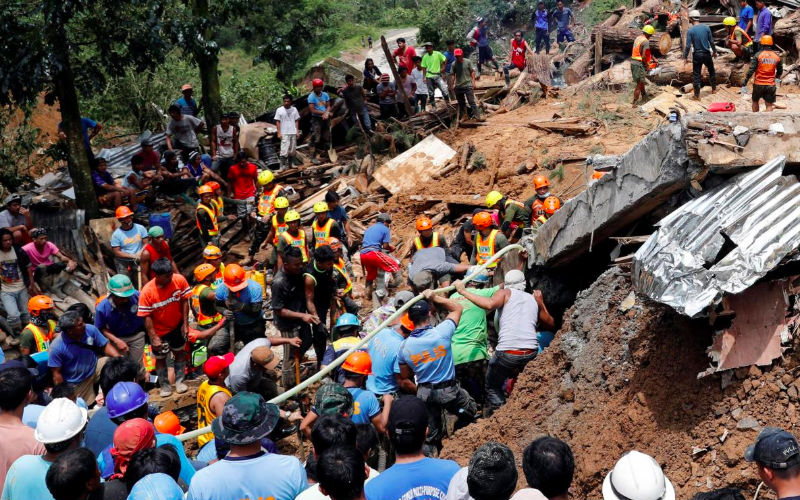 Rescuers seek signs of life after Philippine typhoon landslides