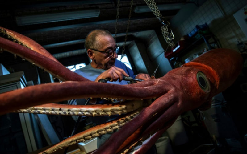 Giant squid gets makeover before showtime