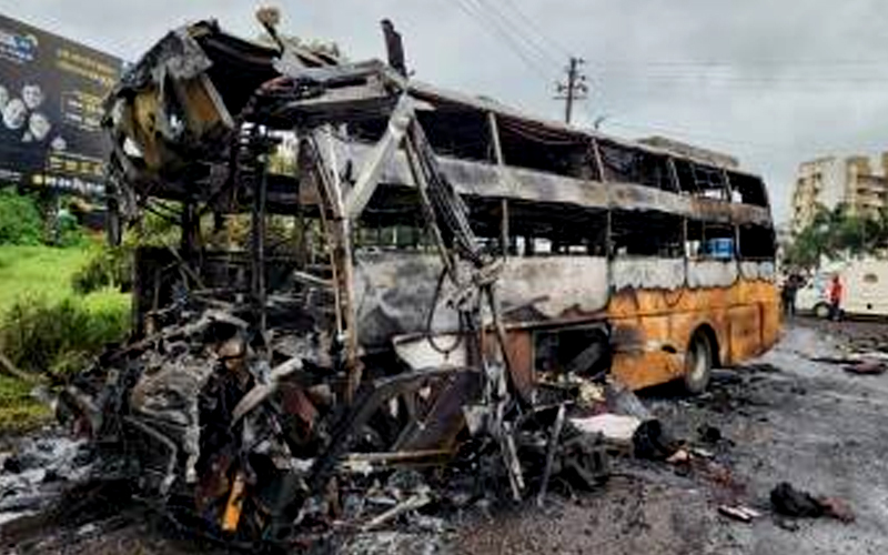 12 rentung bas terbakar di India