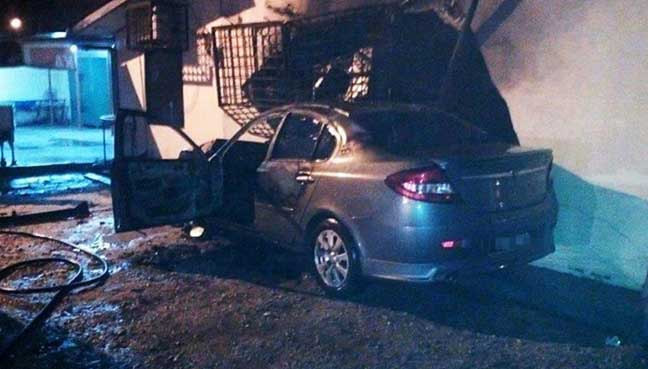 Kereta terbakar selepas rempuh pusat khidmat Adun Umno