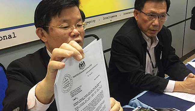 Penang shows Najib’s letter on China loan plan