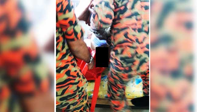 Elderly man gets penis stuck in chair