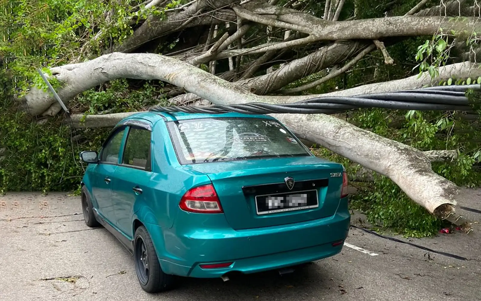 Motorcyclist injured as tree falls on car