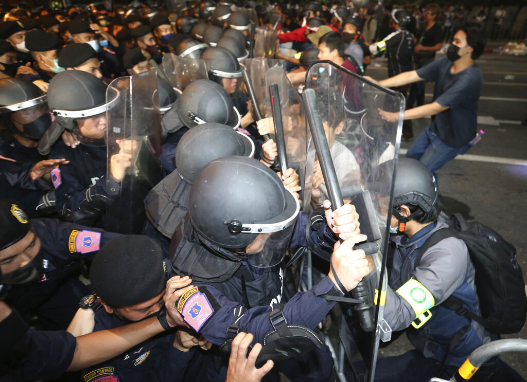 Hundreds of protesters defy ban against ‘gathering’ in Bangkok