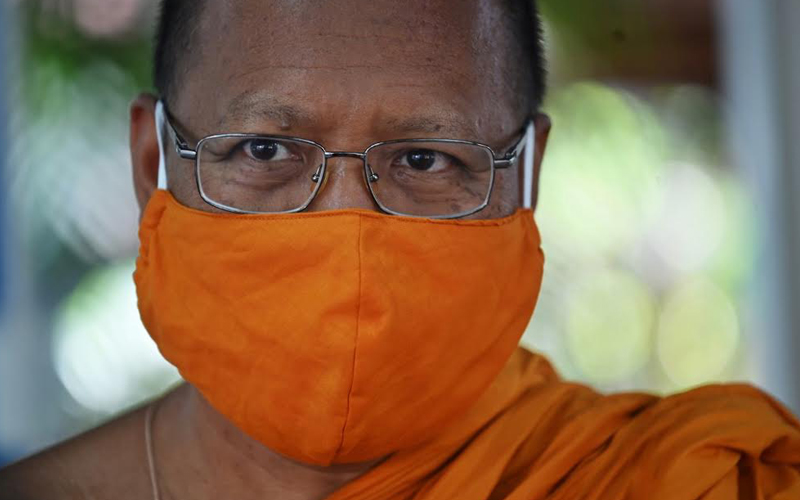 Thai monks use recycled plastic to make face masks