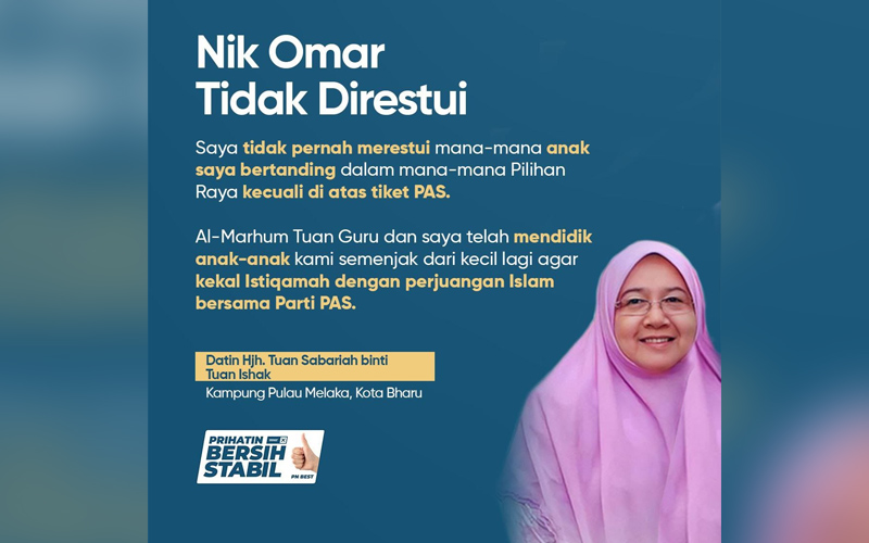 Isteri Nik Aziz tidak restu anak bertanding selain PAS