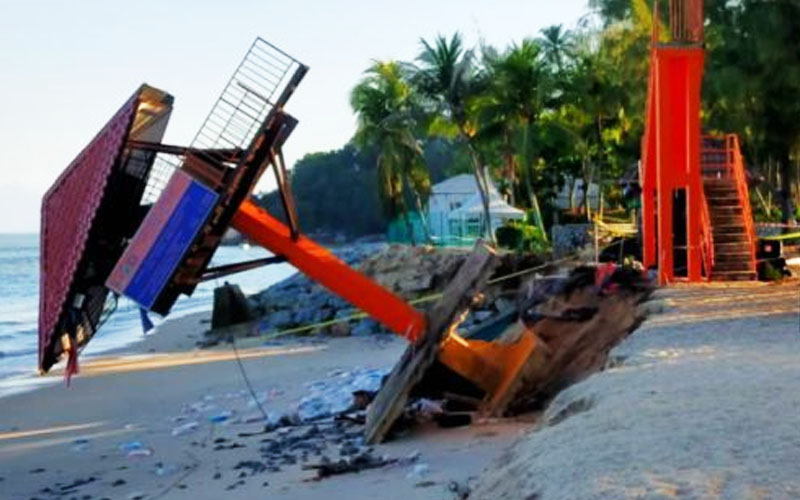 Beach watchtower in Batu Ferringhi collapses after high tide