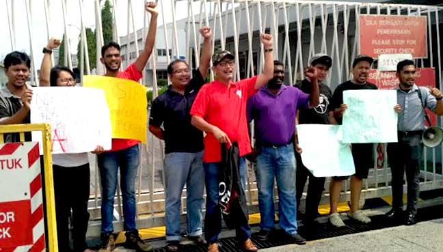 Small group protest at factory over sacking of worker