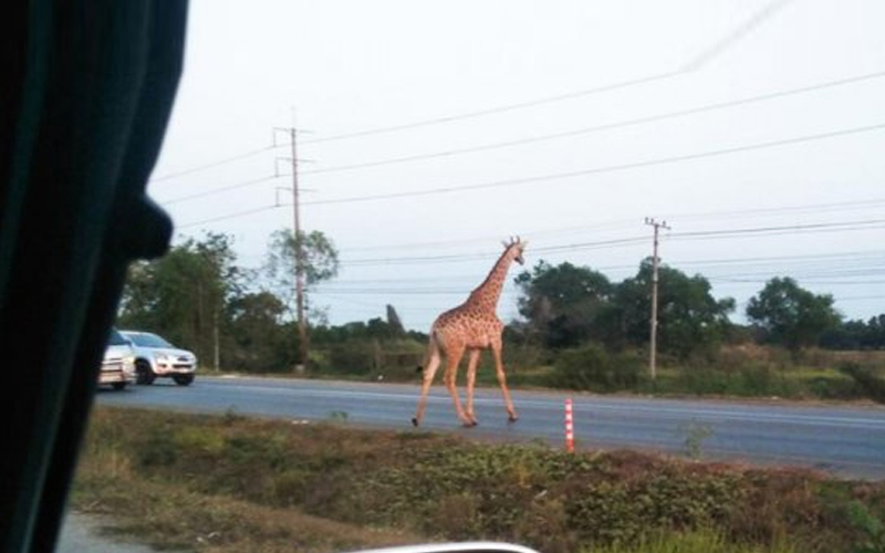 Zirafah lompat keluar daripada lori di lebuhraya